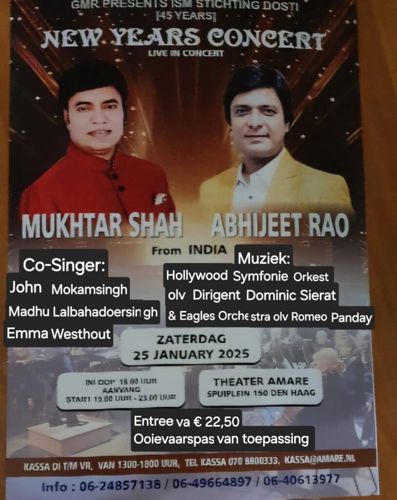 Kleurrijk Nieuwjaar & Culinair Festival 2025: Amare, 25 januari 2024 | 45 Jaar Stichting Dosti | Tickets